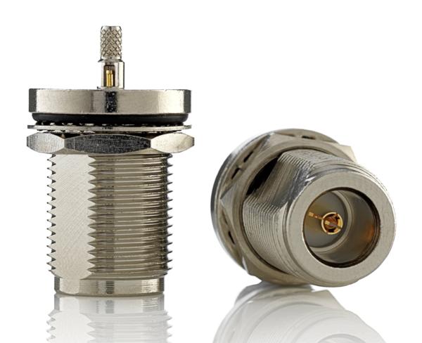 N Type B/H Rear Mount Crimp Female RG174 - Nickel Plated
